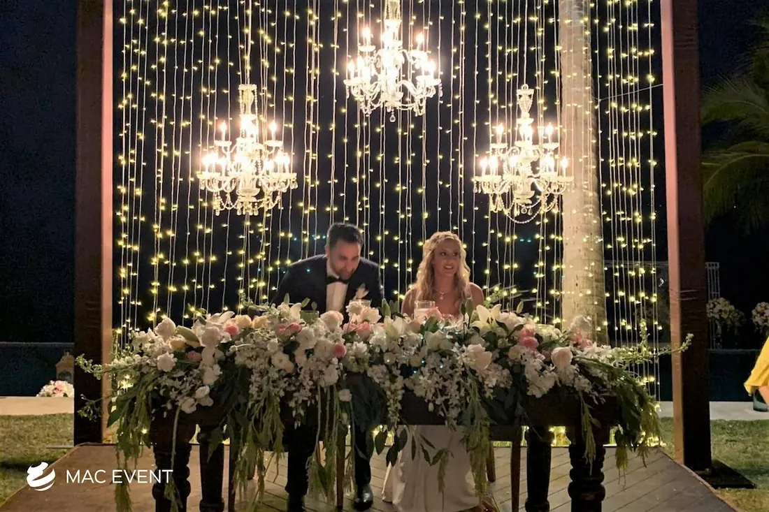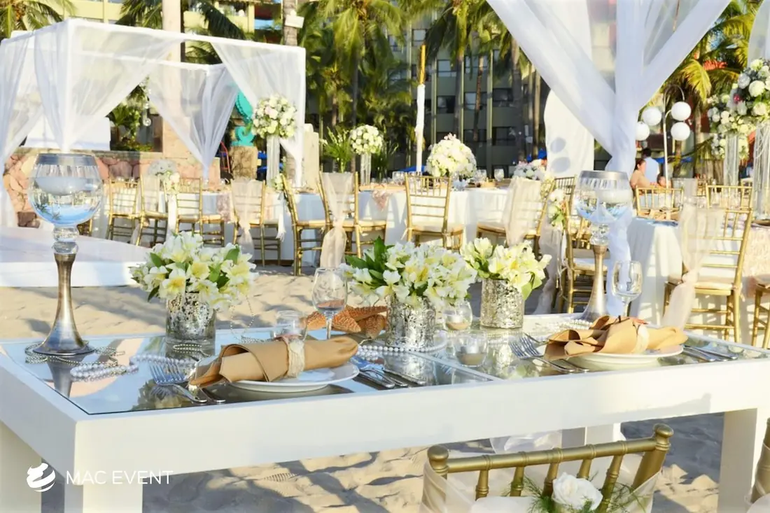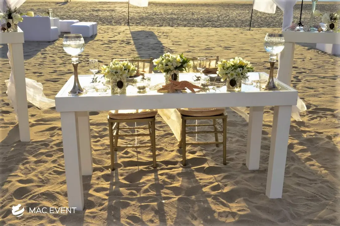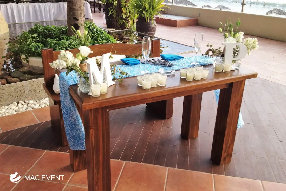 The sweetheart table is a romantic focal point at weddings in La Cruz de Huanacaxtle, designed exclusively for the newlyweds to share their first moments together as a married couple. This wedding table rental combines elegance and intimacy, often highlighted with floral arrangements, candles, and personalized décor that reflect the couple’s style. Positioned at the center of attention, the sweetheart table enhances both the ambiance and the visual flow of the reception. Renting sweetheart tables in La Cruz de Huanacaxtle ensures a beautifully coordinated setup that captures the essence of love and celebration. For an elegant and memorable touch, this table is a must-have feature for any wedding.