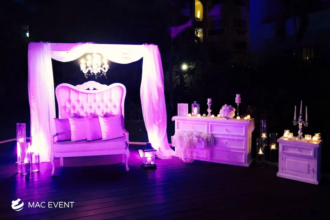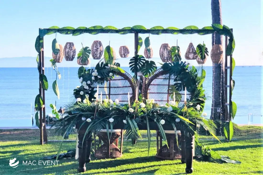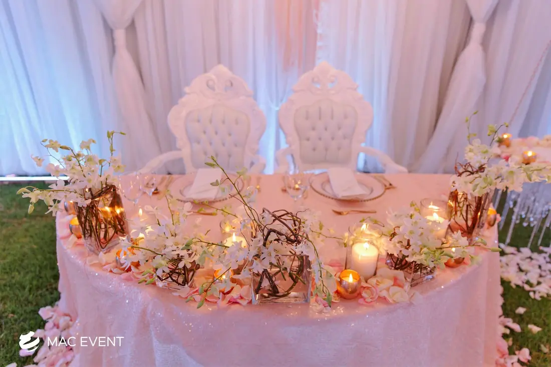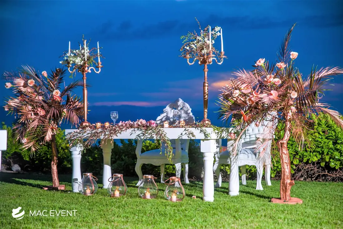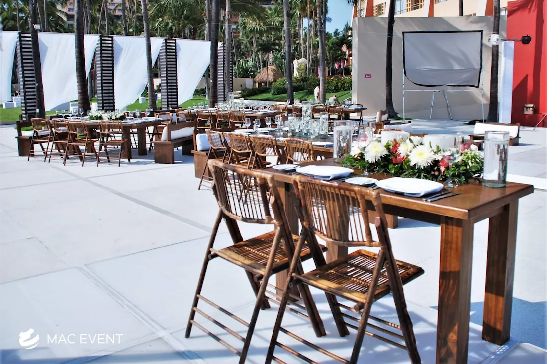 The sweetheart table is a romantic focal point at weddings in La Cruz de Huanacaxtle, designed exclusively for the newlyweds to share their first moments together as a married couple. This wedding table rental combines elegance and intimacy, often highlighted with floral arrangements, candles, and personalized décor that reflect the couple’s style. Positioned at the center of attention, the sweetheart table enhances both the ambiance and the visual flow of the reception. Renting sweetheart tables in La Cruz de Huanacaxtle ensures a beautifully coordinated setup that captures the essence of love and celebration. For an elegant and memorable touch, this table is a must-have feature for any wedding.