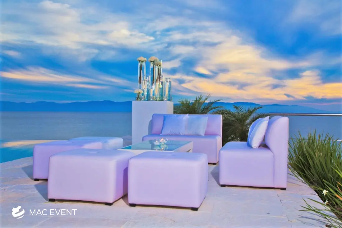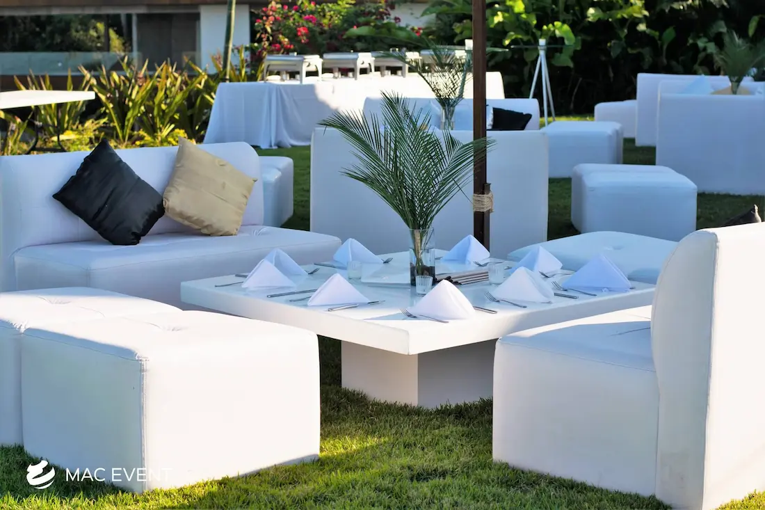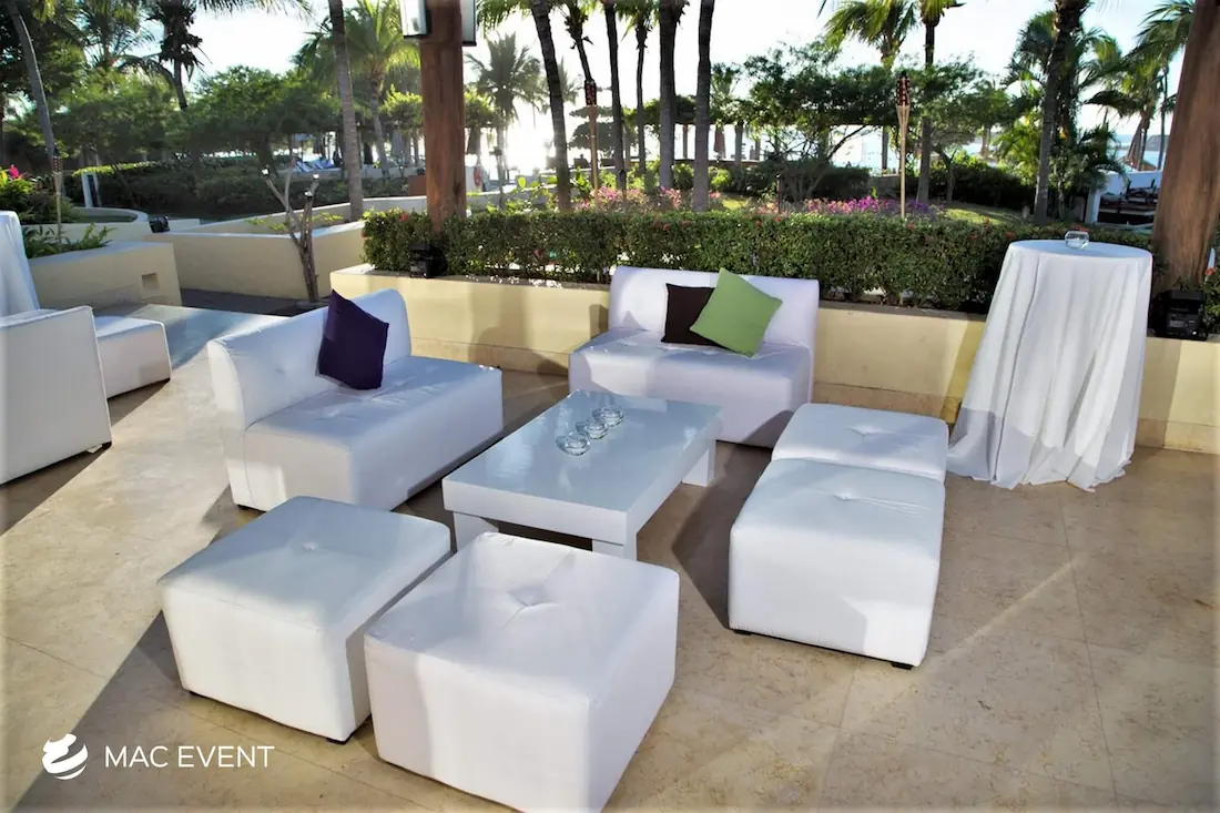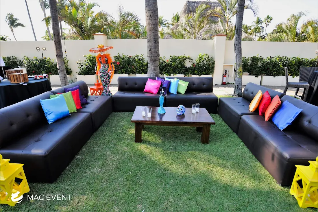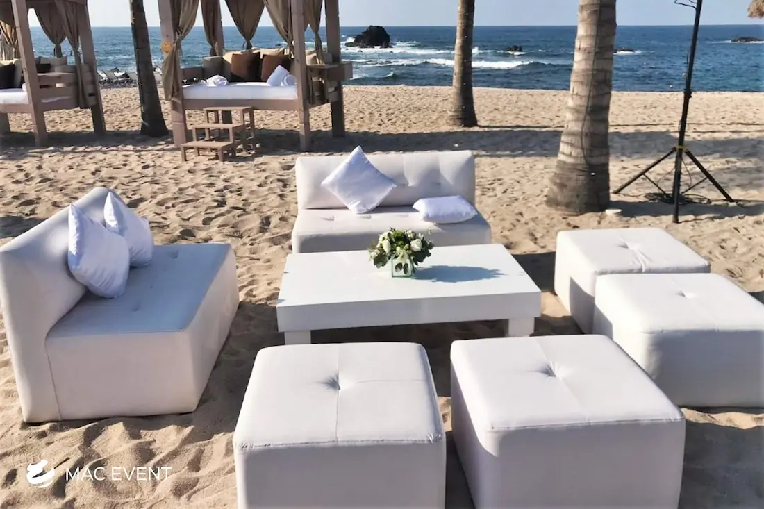 The classic lounge brings timeless elegance and comfort to weddings, parties, and corporate events in La Cruz de Huanacaxtle. With its refined design and neutral tones, this event lounge rental creates an inviting space where guests can relax and enjoy the celebration. Perfect for receptions, cocktail areas, or outdoor gatherings, the classic lounge pairs beautifully with any décor style, from traditional to modern. Renting classic lounges in La Cruz de Huanacaxtle ensures a polished, coordinated look that enhances your event’s atmosphere. For a touch of sophistication and effortless comfort, the classic lounge is a perfect choice for any occasion.
