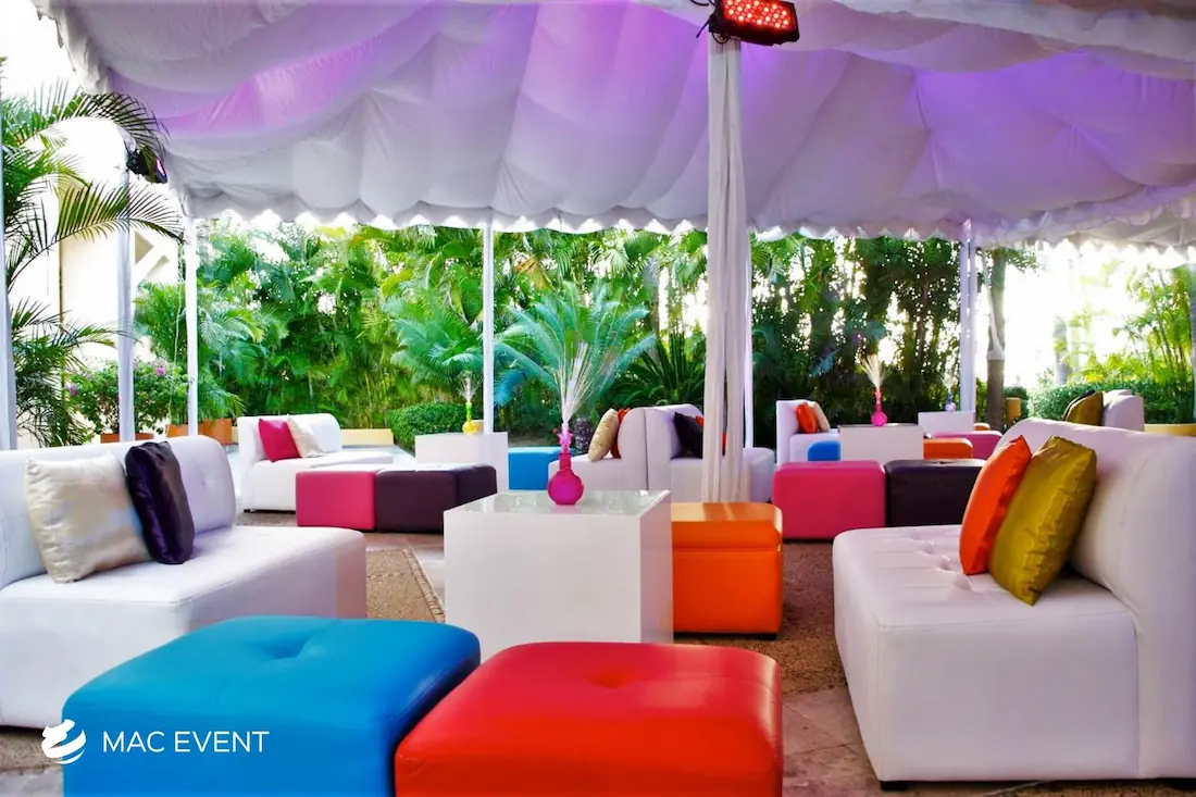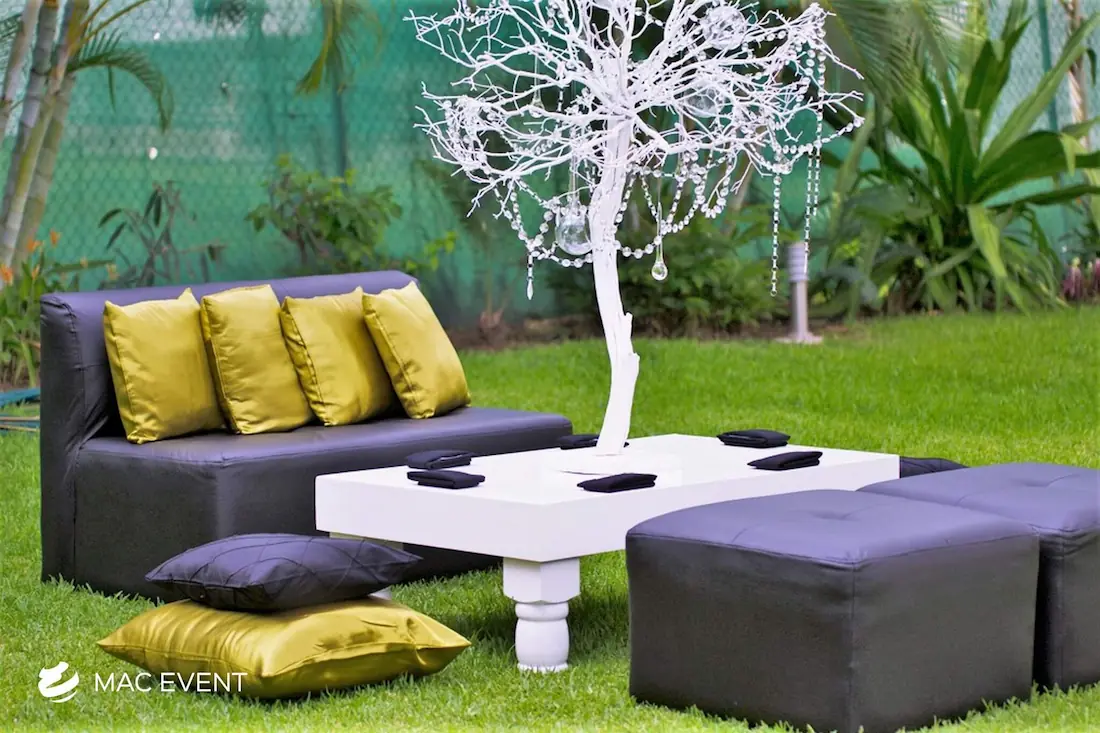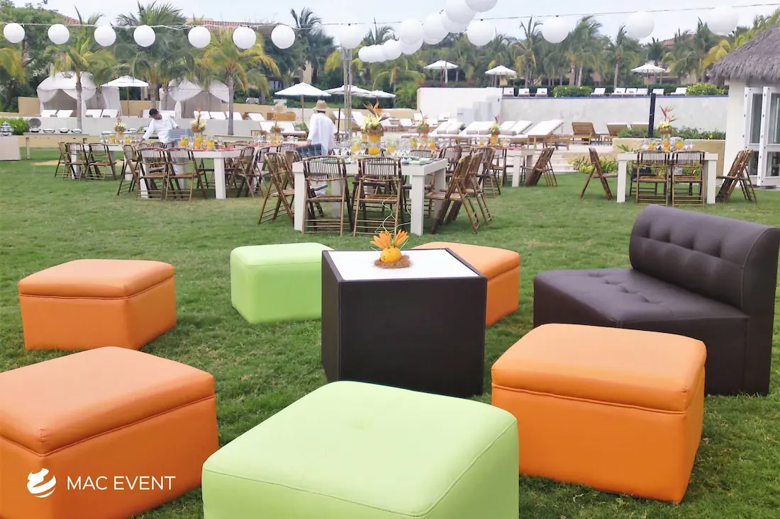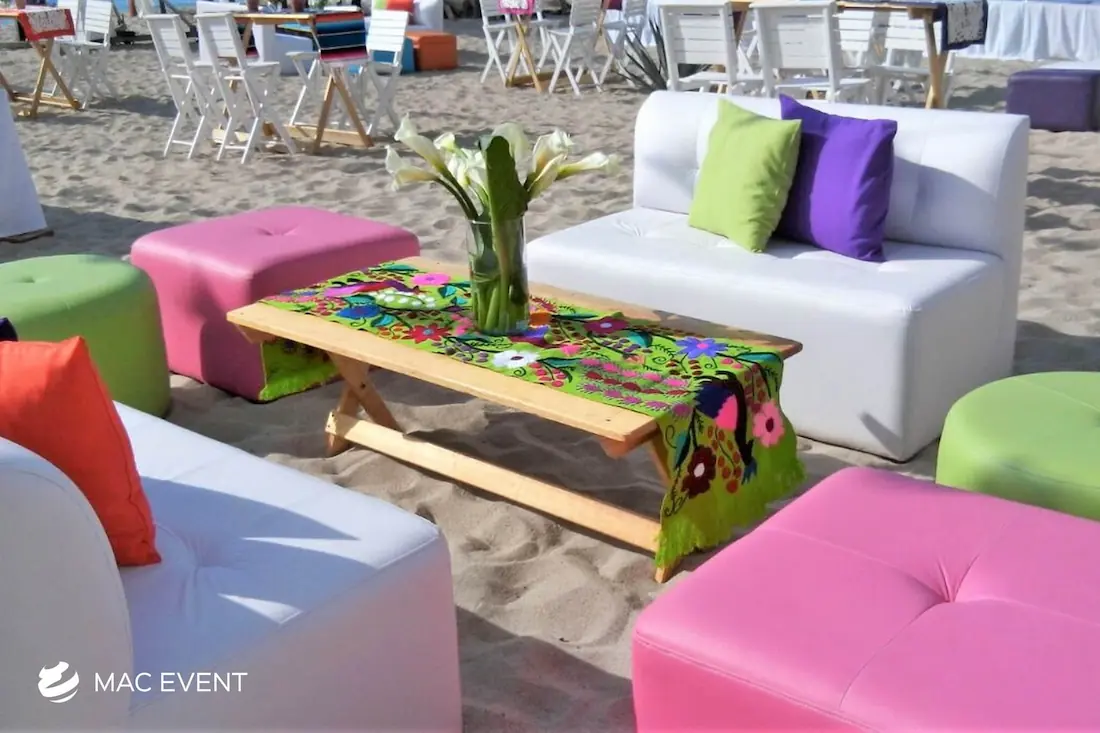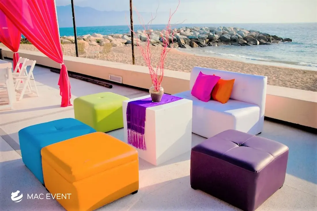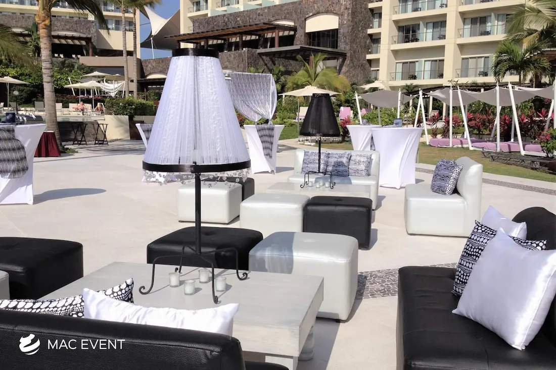 The classic lounge brings timeless elegance and comfort to weddings, parties, and corporate events in La Cruz de Huanacaxtle. With its refined design and neutral tones, this event lounge rental creates an inviting space where guests can relax and enjoy the celebration. Perfect for receptions, cocktail areas, or outdoor gatherings, the classic lounge pairs beautifully with any décor style, from traditional to modern. Renting classic lounges in La Cruz de Huanacaxtle ensures a polished, coordinated look that enhances your event’s atmosphere. For a touch of sophistication and effortless comfort, the classic lounge is a perfect choice for any occasion.