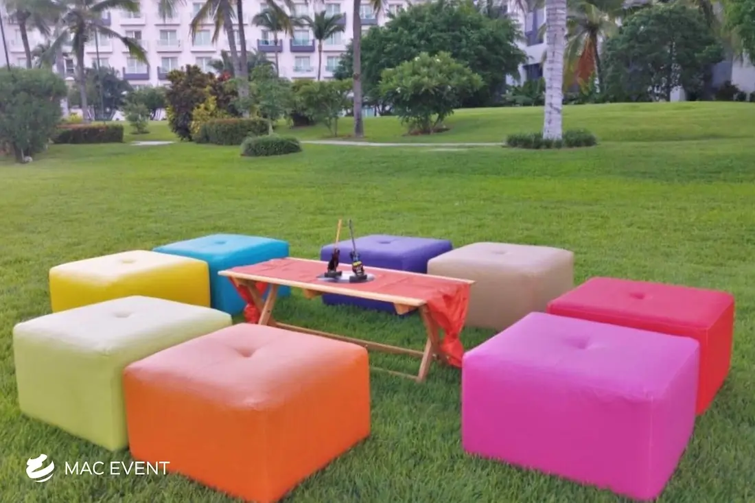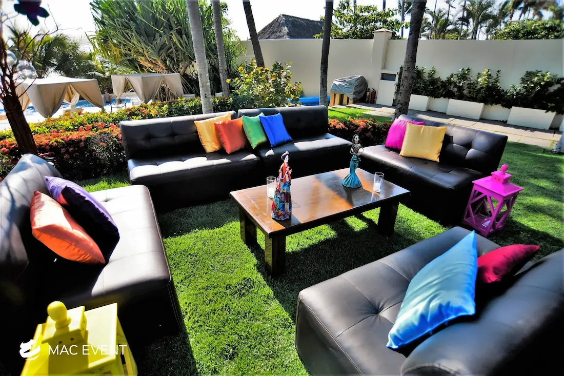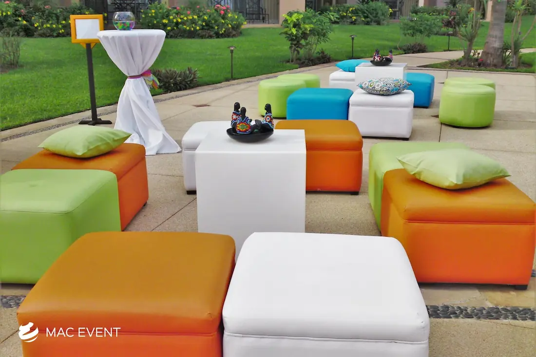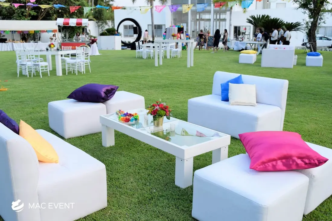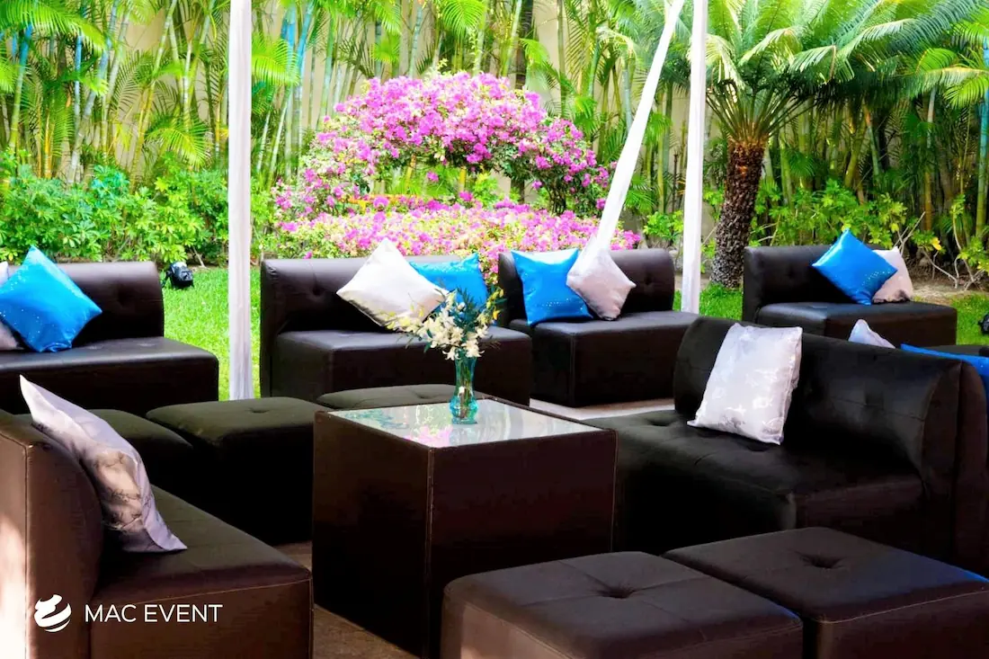 The classic lounge brings timeless elegance and comfort to weddings, parties, and corporate events in La Cruz de Huanacaxtle. With its refined design and neutral tones, this event lounge rental creates an inviting space where guests can relax and enjoy the celebration. Perfect for receptions, cocktail areas, or outdoor gatherings, the classic lounge pairs beautifully with any décor style, from traditional to modern. Renting classic lounges in La Cruz de Huanacaxtle ensures a polished, coordinated look that enhances your event’s atmosphere. For a touch of sophistication and effortless comfort, the classic lounge is a perfect choice for any occasion.