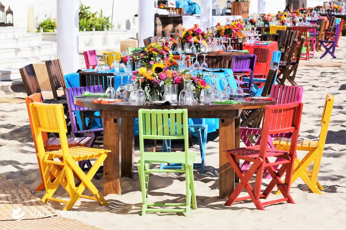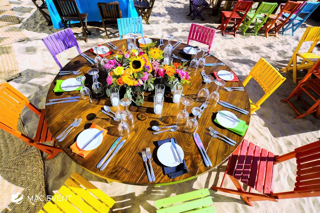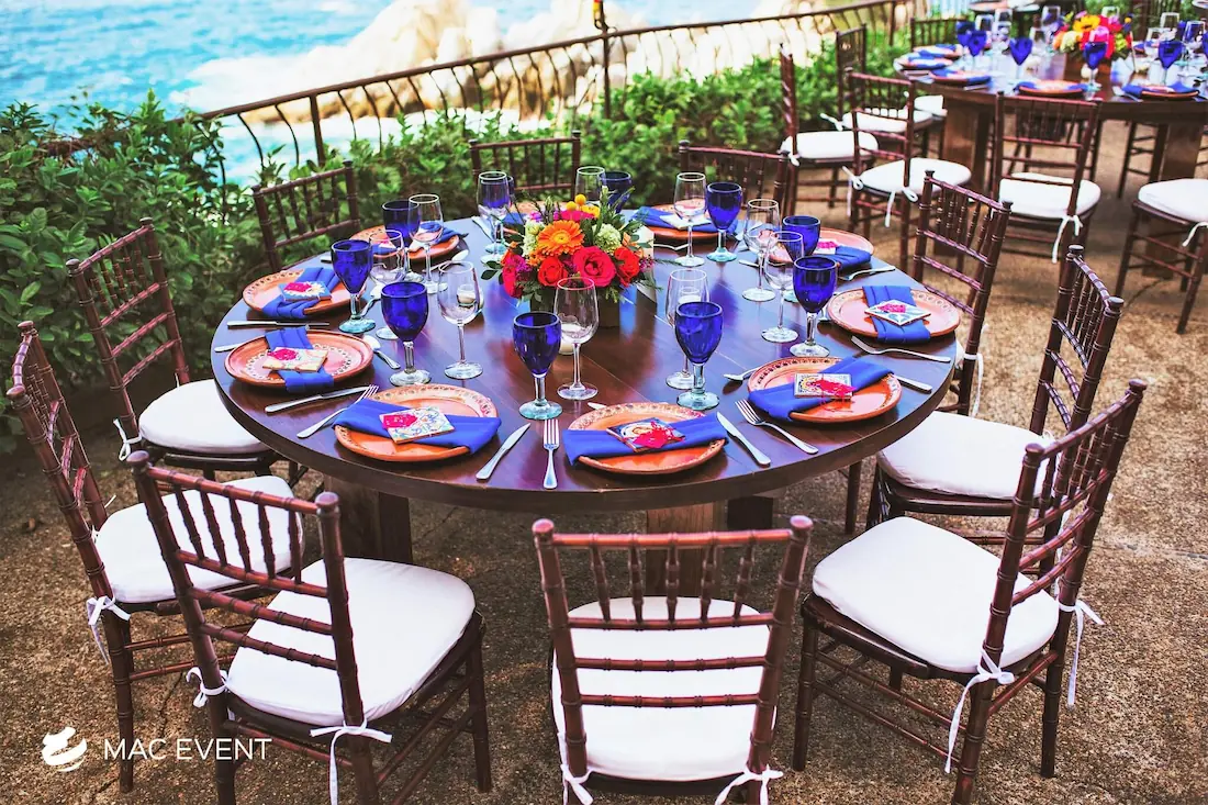 The round rustic table is perfect for weddings, outdoor parties, and elegant gatherings in La Cruz de Huanacaxtle. Its natural wood finish and handcrafted charm create a warm, inviting atmosphere that pairs beautifully with beach, garden, or boho-inspired themes. This event table rental combines style and durability, offering plenty of space for décor, dining, or floral arrangements. Renting round rustic tables in La Cruz de Huanacaxtle adds texture and authenticity to your setup while maintaining comfort and visual harmony. For those who want a touch of natural elegance, the round rustic table is an ideal choice to enhance any celebration.
