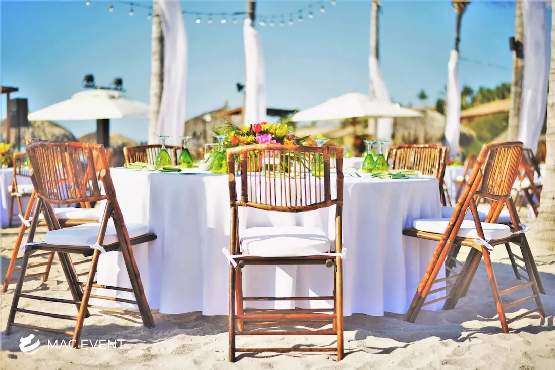 The bamboo chair is a perfect choice for tropical weddings, beach parties, and outdoor events in La Cruz de Huanacaxtle. Its natural texture and warm tone create a relaxed yet elegant atmosphere that blends beautifully with the local surroundings. Lightweight and eco-friendly, this bamboo chair rental is ideal for open-air ceremonies and casual gatherings where comfort and style matter equally. Renting bamboo chairs adds a touch of authenticity and charm to your event while ensuring a cohesive and inviting setup. For a tropical, sustainable, and refined look, the bamboo chair brings nature’s beauty into every celebration in La Cruz de Huanacaxtle.