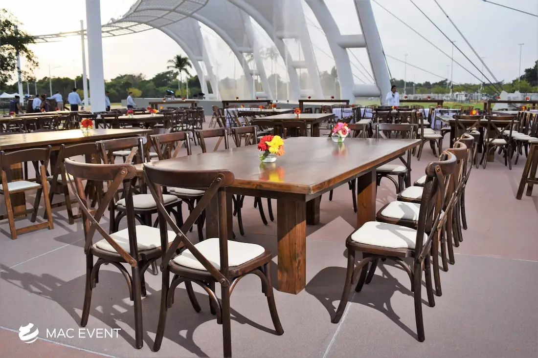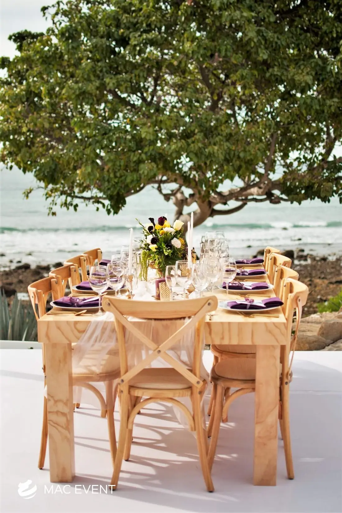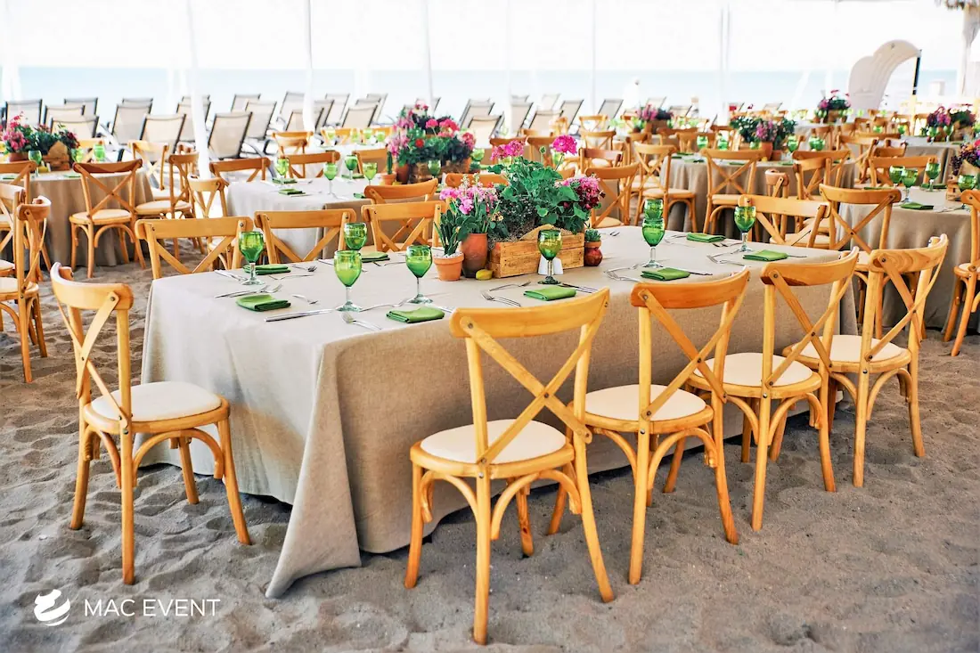 The cross back chair, also known as a x-back chair or farmhouse chair, is a timeless favorite for weddings, private parties, and elegant events in La Cruz de Huanacaxtle. Its rustic yet refined design blends perfectly with beach, garden, or boho-inspired settings, adding charm and character to any venue. Crafted from sturdy wood with a curved back for comfort, this cross back chair rental offers both beauty and practicality. Renting x-back chairs ensures a coordinated look that enhances your décor while keeping guests comfortable throughout the celebration. For a natural and sophisticated atmosphere, cross back chairs are the perfect choice for any event in La Cruz de Huanacaxtle.