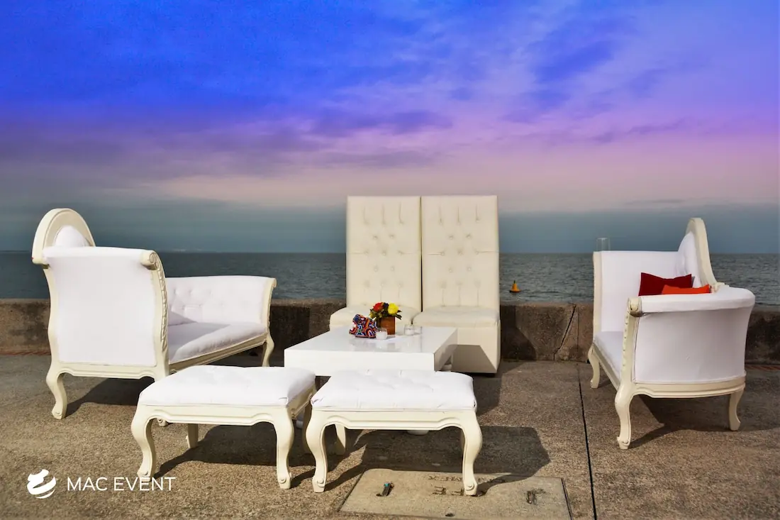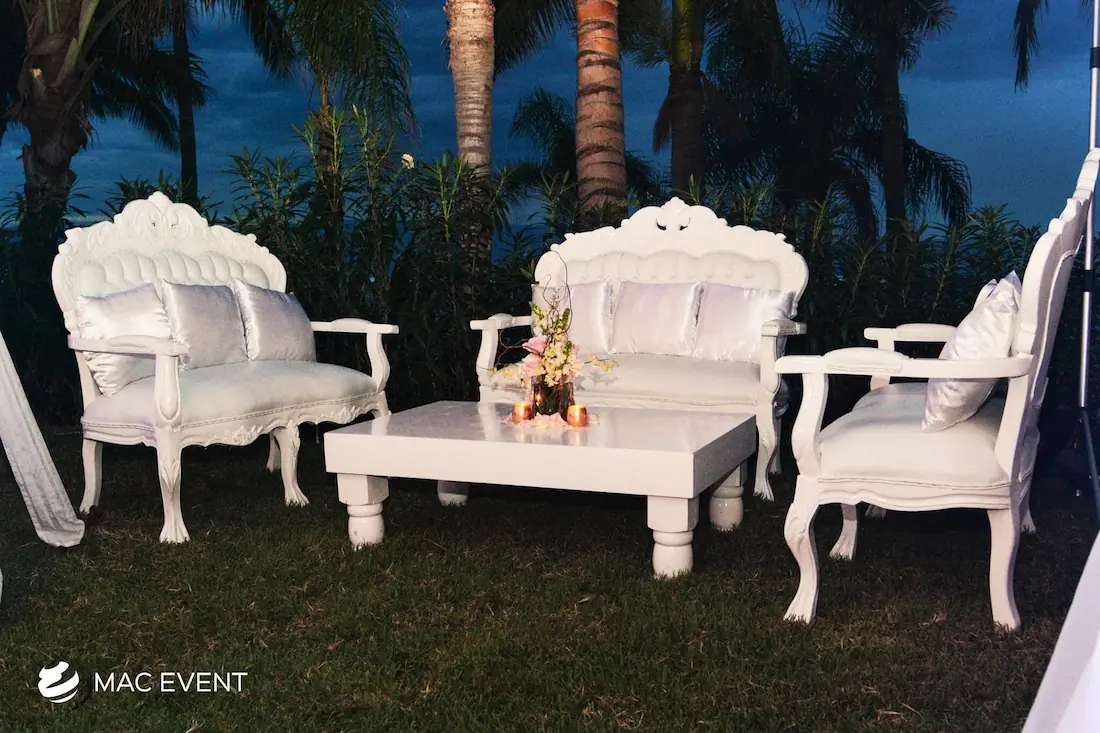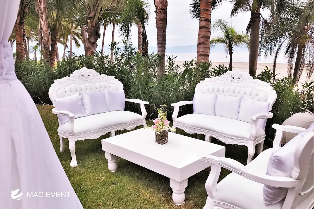 The victorian lounge adds a touch of luxury and refinement to weddings, parties, and corporate events in La Cruz de Huanacaxtle. Characterized by its elegant curves, ornate details, and plush upholstery, this event lounge rental creates a sophisticated atmosphere reminiscent of classic European style. Ideal for formal receptions, photo areas, or upscale gatherings, the victorian lounge combines comfort with timeless beauty. Renting victorian lounges in La Cruz de Huanacaxtle ensures a graceful and coordinated look that elevates your event’s décor. For those seeking elegance, charm, and a sense of grandeur, the victorian lounge is the perfect choice.