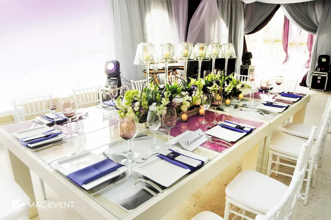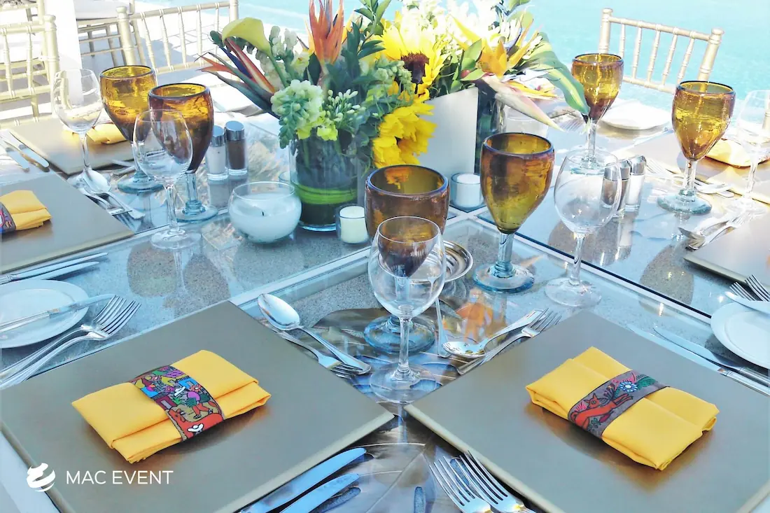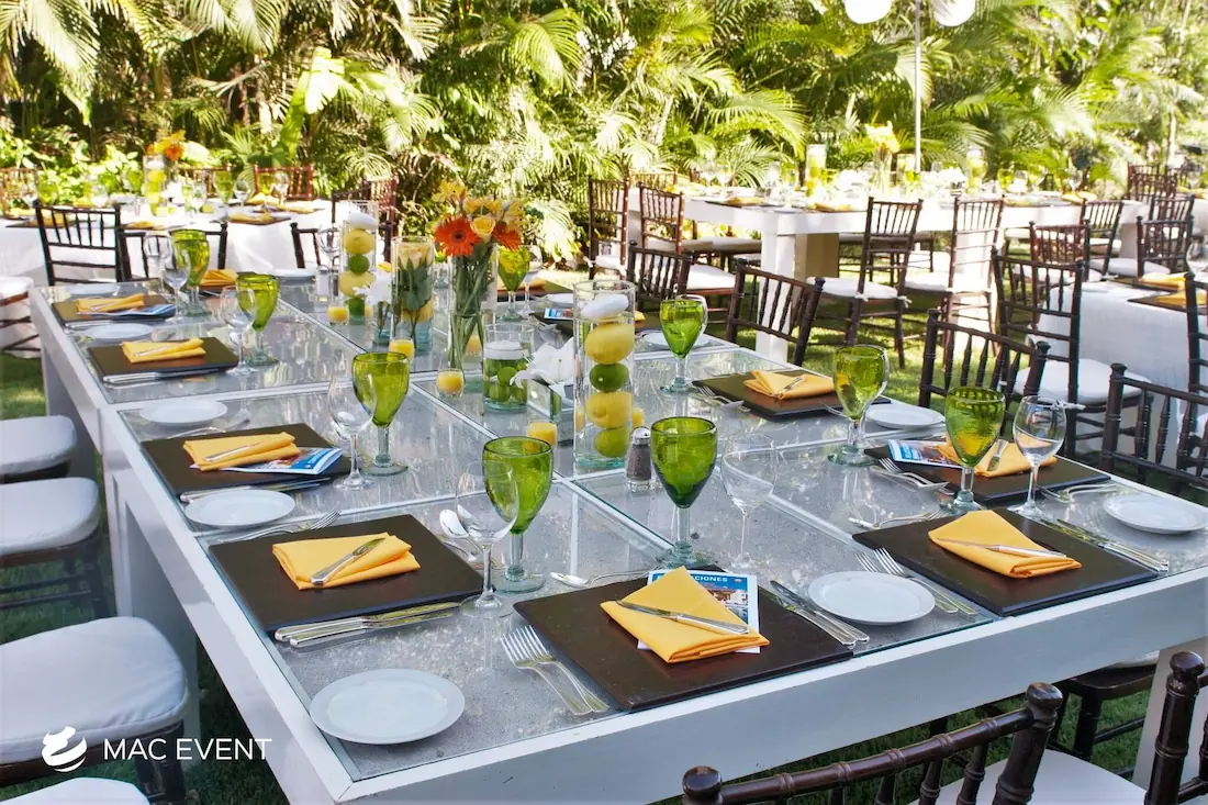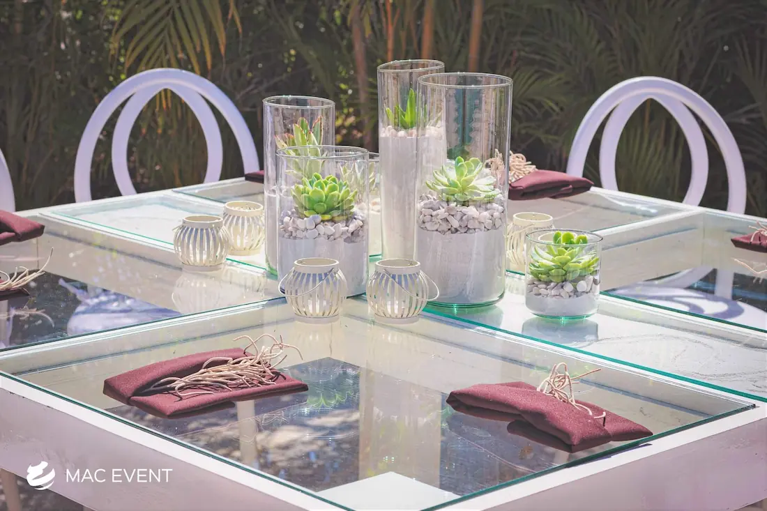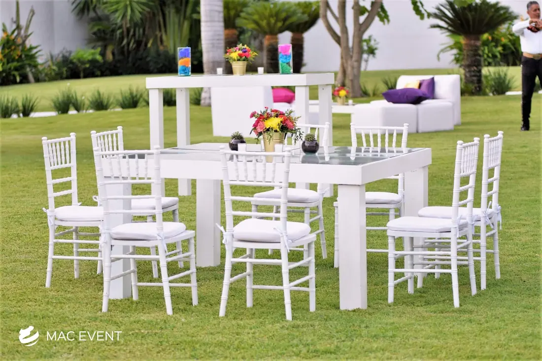The wooden glass table combines natural elegance with a modern touch, making it perfect for weddings, parties, and corporate events in La Cruz de Huanacaxtle. Its wooden frame adds warmth, while the glass top provides a sleek and sophisticated finish that complements any décor style. This event table rental works beautifully for dining areas, sweetheart setups, or display tables, creating a refined and inviting look. Renting wooden glass tables in La Cruz de Huanacaxtle ensures a polished presentation with durability and style. For an event that blends rustic charm with contemporary design, the wooden glass table is an exceptional choice.