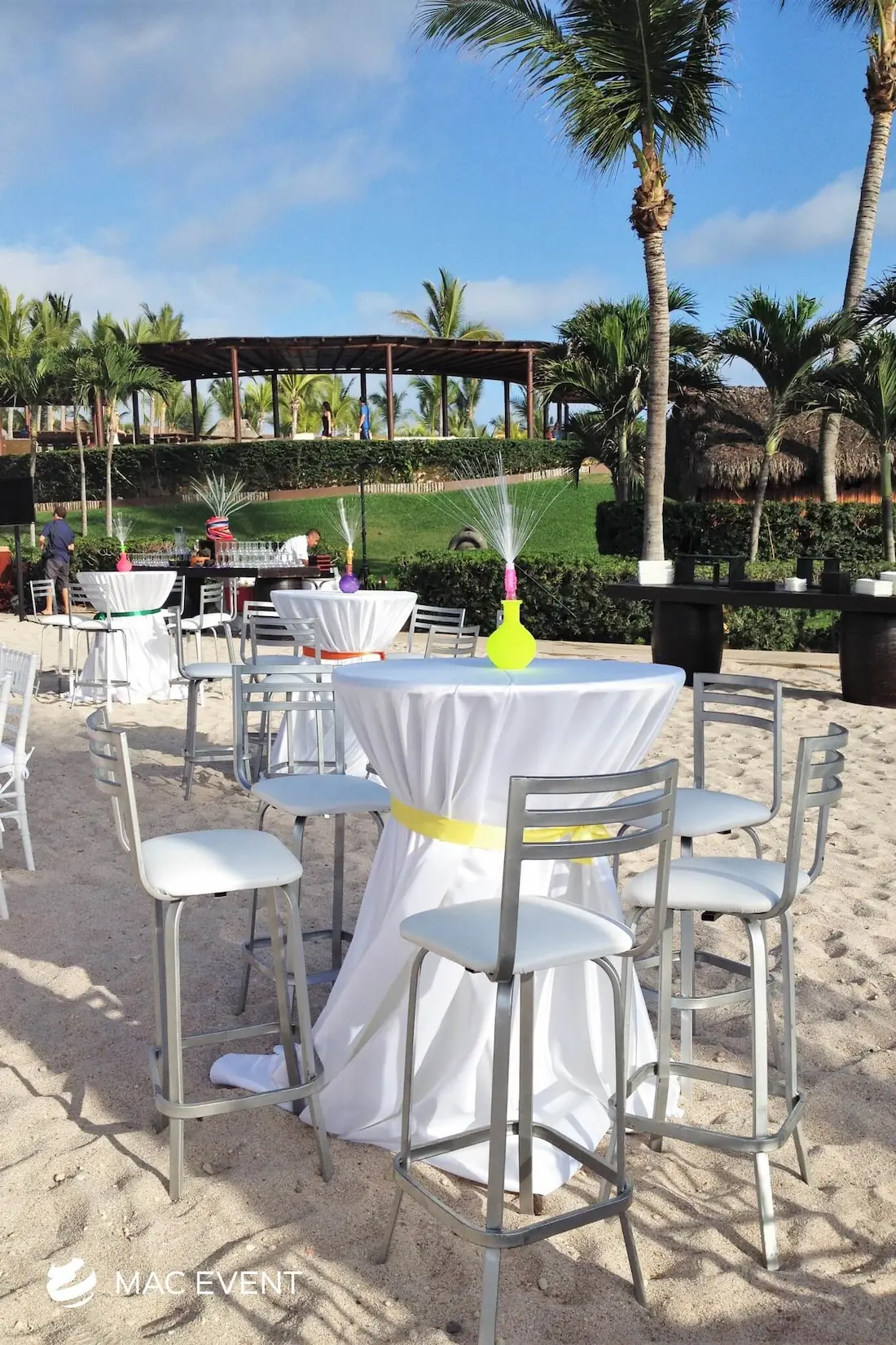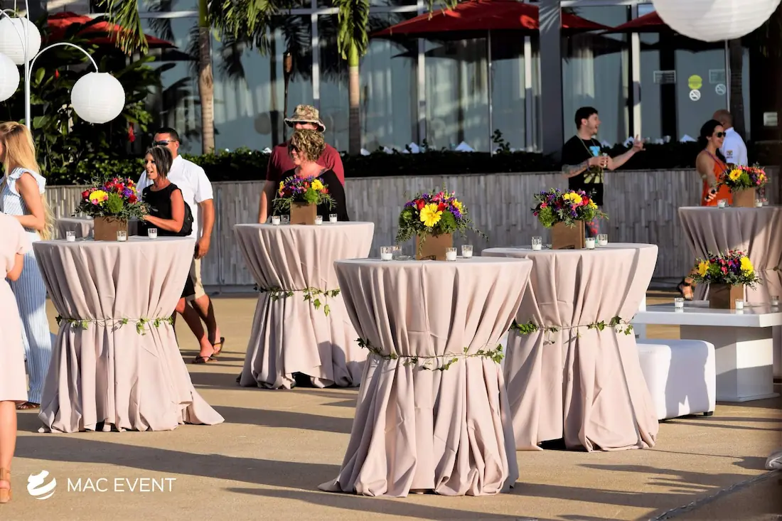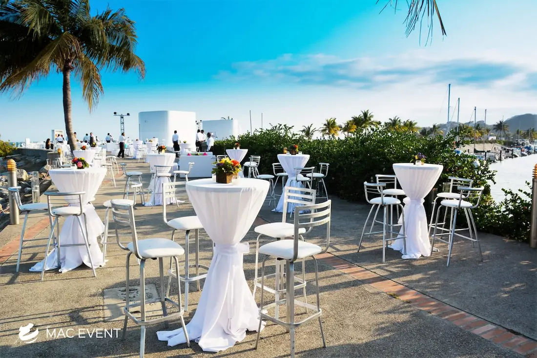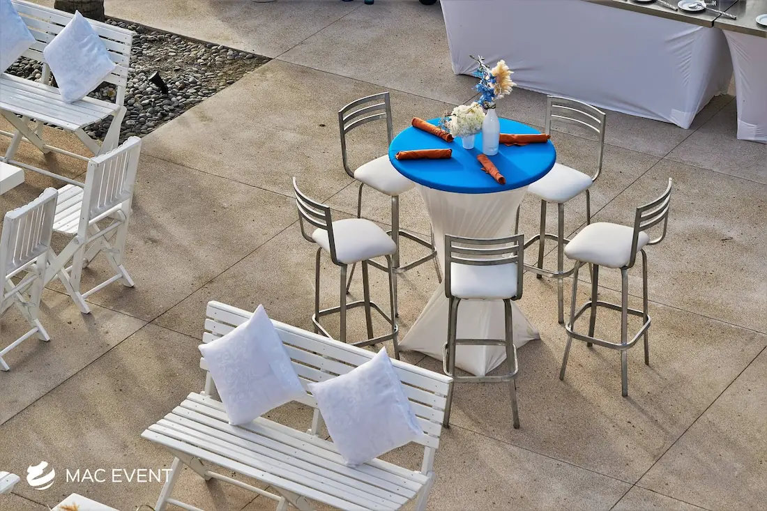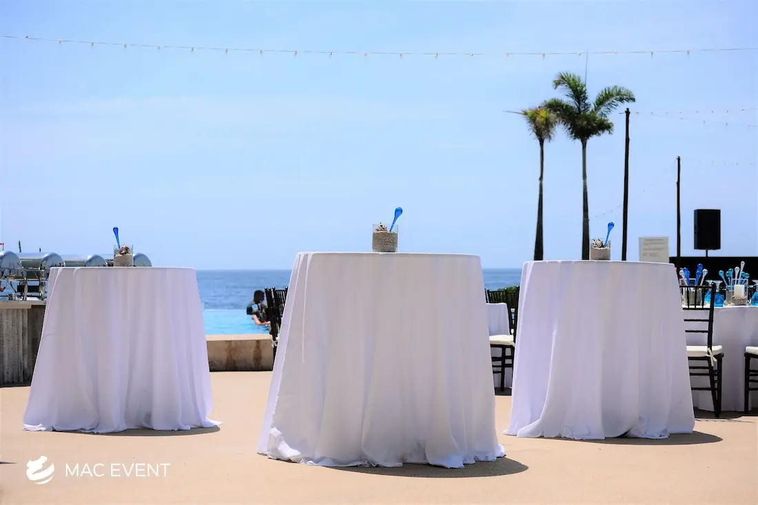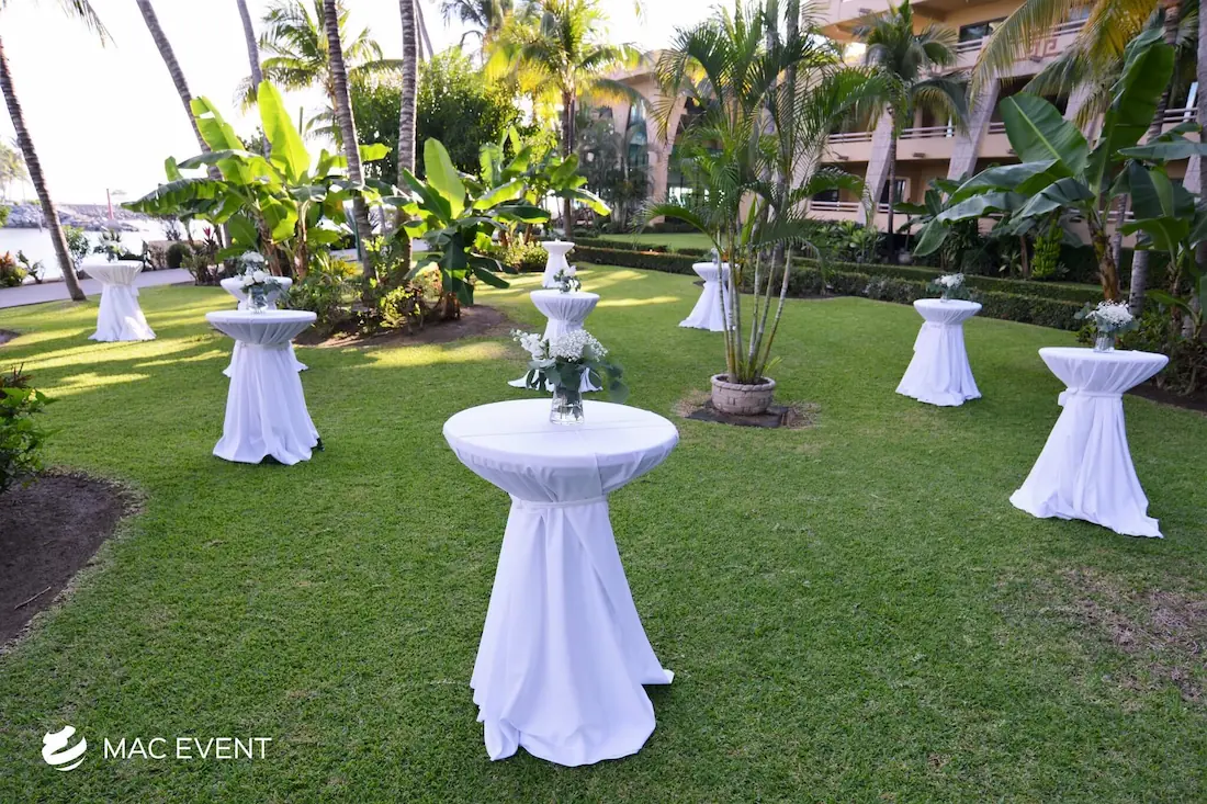 The classic cocktail table adds elegance and versatility to weddings, parties, and corporate events in La Cruz de Huanacaxtle. With its clean lines and timeless design, this event table rental fits beautifully in both indoor and outdoor spaces, creating the perfect area for guests to enjoy drinks and conversation. Ideal for cocktail hours, receptions, and networking events, the classic cocktail table offers a polished look that complements any décor style. Renting classic cocktail tables in La Cruz de Huanacaxtle ensures a cohesive and stylish setup that balances sophistication with practicality, making your event both inviting and memorable.