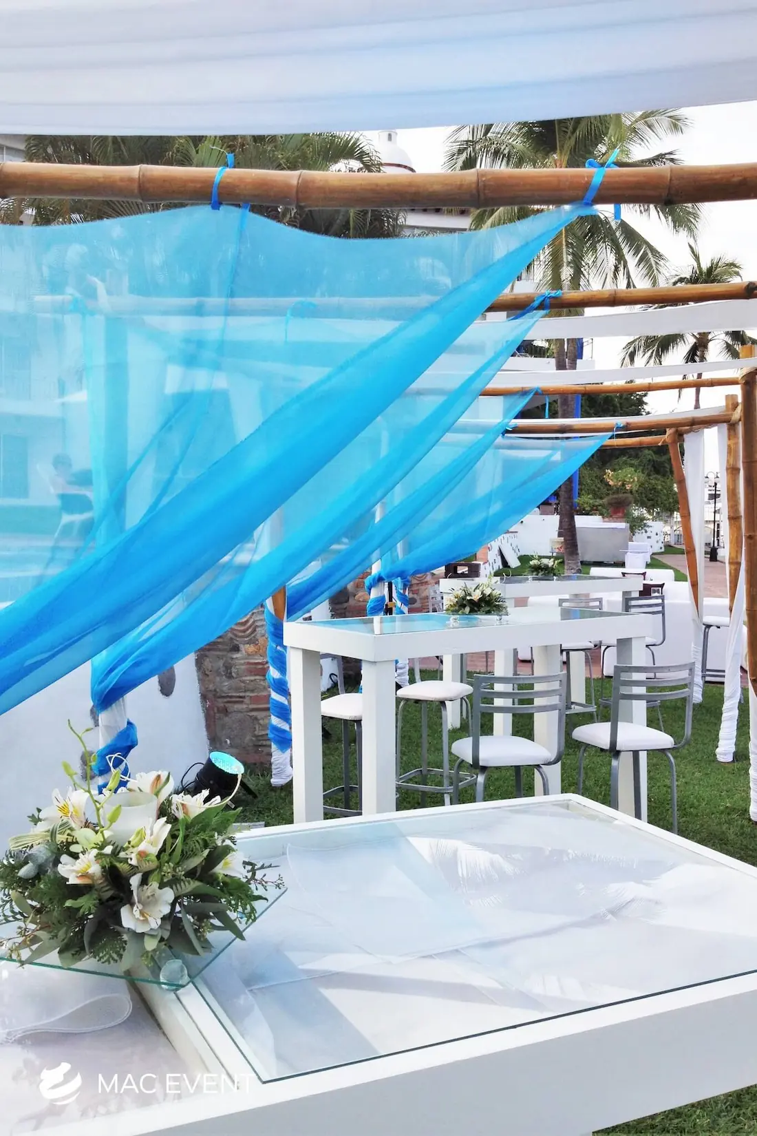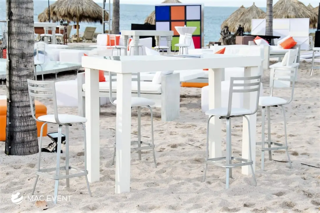 The wooden glass cocktail table combines natural beauty with modern elegance, making it a stylish choice for weddings, parties, and corporate events in La Cruz de Huanacaxtle. Its wooden base adds warmth and character, while the glass top gives a sleek, refined finish that complements any décor. This event table rental works perfectly for cocktail hours, lounge areas, or receptions where you want to create a polished yet inviting atmosphere. Renting wooden glass cocktail tables in La Cruz de Huanacaxtle ensures a cohesive setup that blends sophistication with comfort. For an event that stands out with style and balance, this table is an ideal addition.