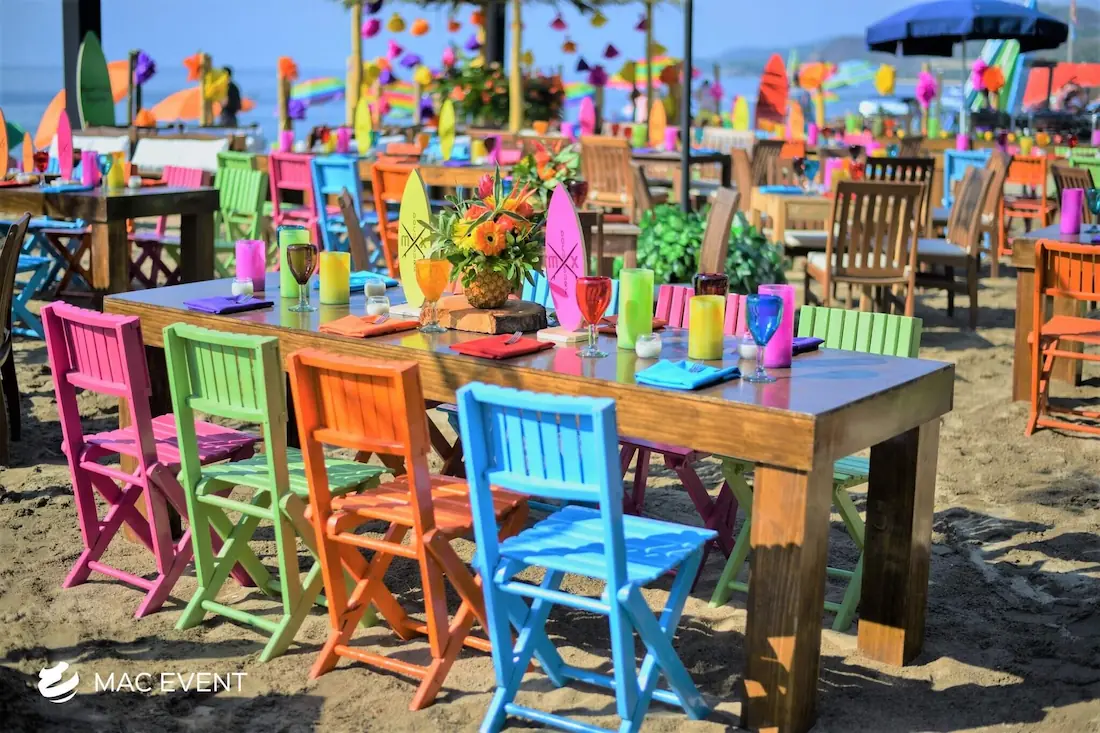 The rustic long table adds warmth and natural charm to weddings, parties, and corporate events in La Cruz de Huanacaxtle. Crafted from solid wood with a handcrafted finish, this event table rental creates an inviting atmosphere that fits perfectly with boho, tropical, or countryside themes. Ideal for family-style dining, outdoor receptions, or elegant beach setups, the rustic long table combines durability with timeless beauty. Renting rustic long tables in La Cruz de Huanacaxtle allows you to design cohesive, welcoming spaces that encourage connection and conversation. For a naturally elegant and authentic setting, this table is a perfect choice for any event.