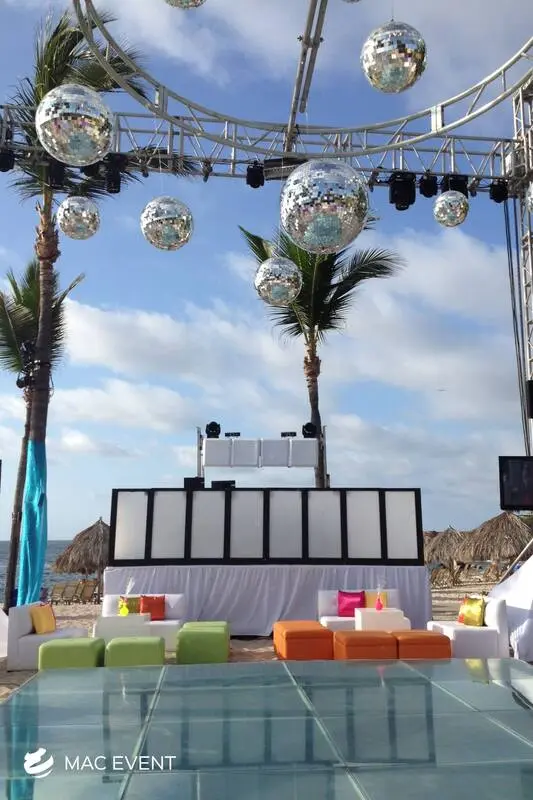 The disco ball adds sparkle, movement, and retro charm to weddings, parties, and corporate events in La Cruz de Huanacaxtle. Perfect for dance floors and evening celebrations, this event lighting rental reflects light beautifully across the venue, creating a fun and energetic atmosphere. Whether paired with colorful spotlights or modern LED effects, the disco ball brings a lively and festive touch to any setup. Renting disco balls in La Cruz de Huanacaxtle ensures professional installation and a polished look that keeps guests entertained. For a dazzling and unforgettable party experience, the disco ball is a classic favorite.
